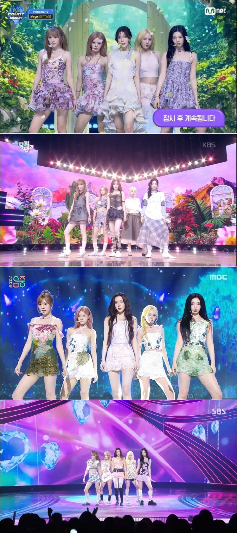 | 각 방송사 음악방송을 섭렵한 걸그룹 이프아이. [사진=Mnet, KBS, MBC, SBS] |
