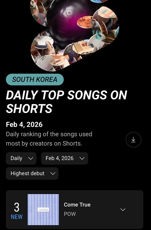 | YT '탑 송 온 쇼츠' 차트. [사진=YT 캡처] |