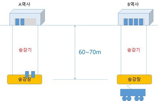 | ▲GTX 대심도 철도역사 다중운행 승강기 개념도 |