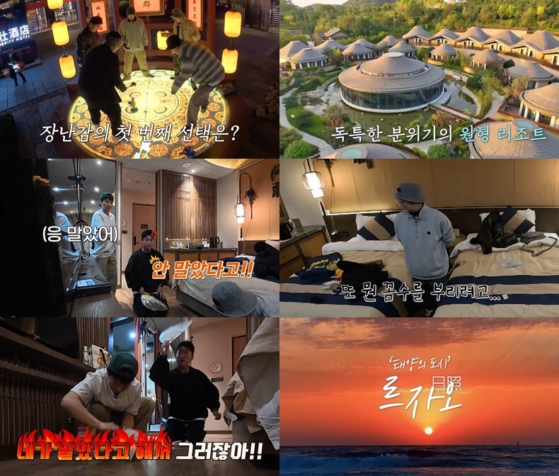 이날 린이시 투어를 마친 ‘독박즈’는 2일 차 숙소가 있는 르자오시로 떠난다. 얼마 후 이들은 입구부터 독특한 숙소 분위기와 스케일에 놀라 눈을 번쩍 뜨고, 홍인규는 “뭐야? 피라미드 집이야?”라며 감탄한다. 모든 건물들이 원형으로 되어 있는 숙소에서 체크인을 마친 멤버들은 “테라스에 프라이빗 온천도 있네~”라며 설레어 한다.