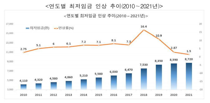 내년도 최저임금 시급 1.5% 오른 8720원...역대최저 '사실상 동결'