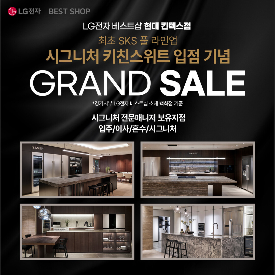 [HBN뉴스 = 정동환 기자] LG전자 베스트샵 현대 킨텍스점이 초프리미엄 빌트인 가전 브랜드인 ‘시그니처 키친 스위트(SIGNATURE KITCHEN SUITE, 이하 SKS)’의 풀 라인업 입점을 기념해 대규모 그랜드 세일 행사를 진행한다.