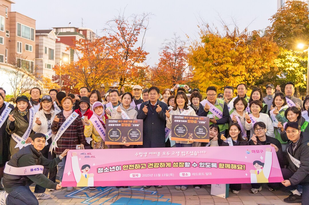 | 수능 당일인 11월 13일, 박강수 마포구청장이 레드로드에서 청소년 유해환경 예방 캠페인을 펼쳤다. [사진=마포구] |