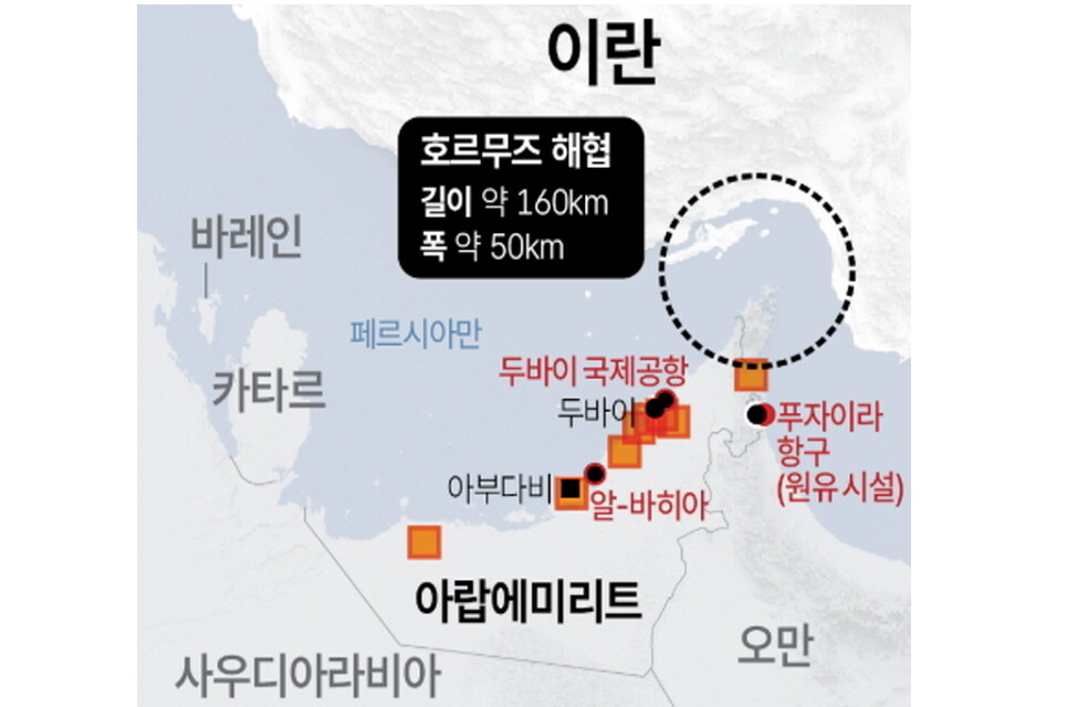 이로 인해 현재까지 뚜렷한 대체 수급처를 찾지 못하는 한국 정부의 행보에 대한 비판이 제기되고 있다. 일본 정부가 원유 수급의 '우회 경로'로 활용하고 있는 UAE 푸자이라항만의 송유관 인프라는 한국 기업인 SK에서 건설했다. 총 길이 약 360km~400km 이 송유관은 아부다비에서 스웨이한, 알아인 서쪽을 거쳐 하 자르 산맥을 넘어 푸자이라까지 육지로 연결되어 있어, 위험 지역인 호르무즈 해협을 통과하지 않고도 원유를 실을 수 있는 핵심적인 루트다. SK는 'UAE 알 만도스 원유 비축 기지'라는 프로젝트 명으로 2019년 이 사업을 수주해 시공 및 시운전을 수행했다.