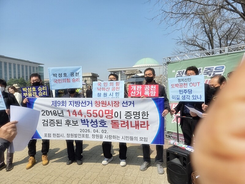 지난 2일 오전, 박성호 창원시장 예비후보 지지자들과 창원 지역 책임당원들은 서울 여의도 국회의사당 정문 앞과 국민의힘 중앙당사를 잇달아 항의 방문하여 대규모 집회를 열고, 이번 공천 결과에 대한 강력한 유감을 표명했다.