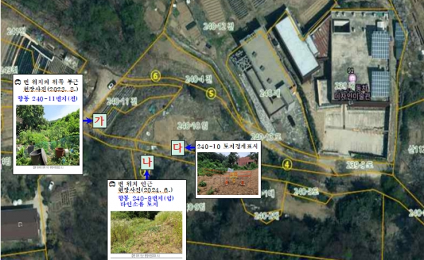 △사진=고양시 덕양구가 향동동 240-10 토지 소유주에게 ‘산림훼손(대지화)-농작물 재배’ 개발제한구역법 위반 이행강제금 부과 기준으로 사용한 문제의 사진 [제공/덕양구청]