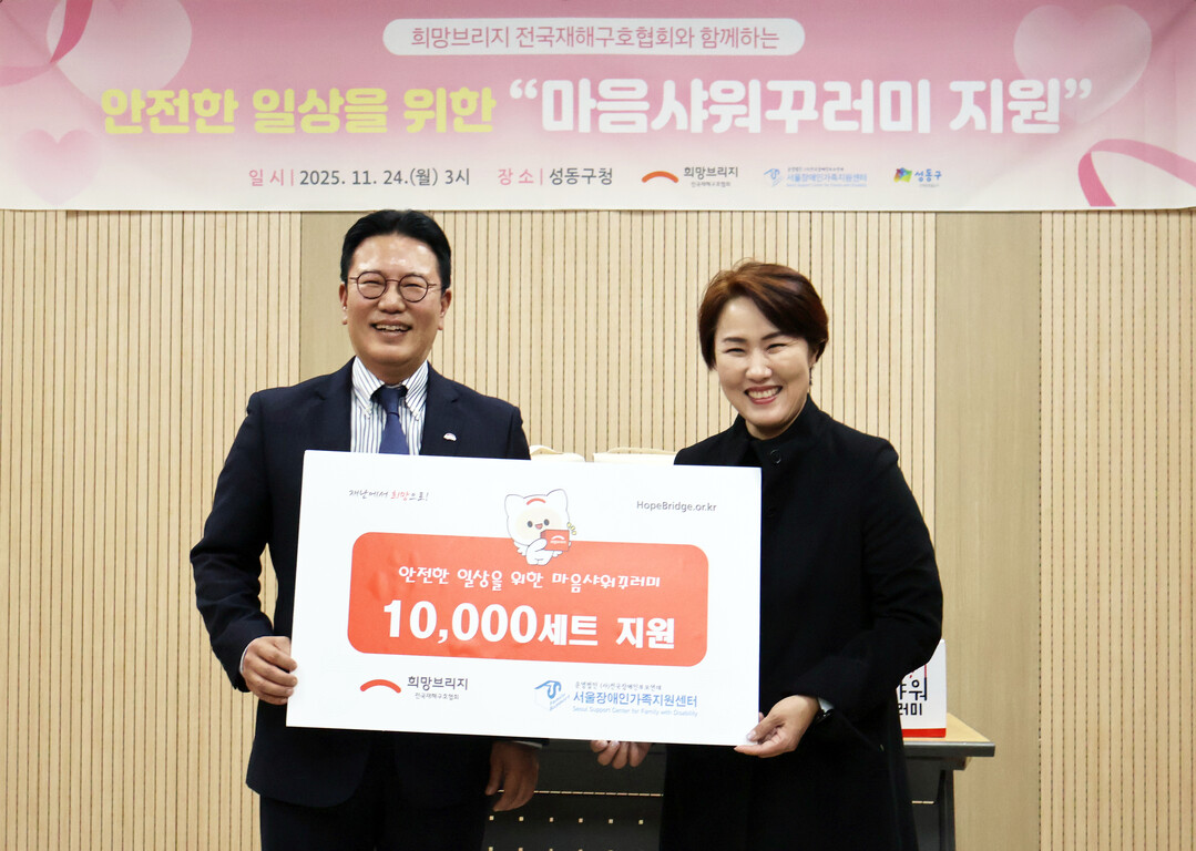 [HBN뉴스 = 한주연 기자] 희망브리지 전국재해구호협회(회장 임채청)는 서울시 장애인가족지원센터(센터장 김남연)에 감염병 예방을 위해 1억 원 상당의 ‘마음샤워꾸러미’ 1만 세트를 전달했다고 25일 밝혔다.
