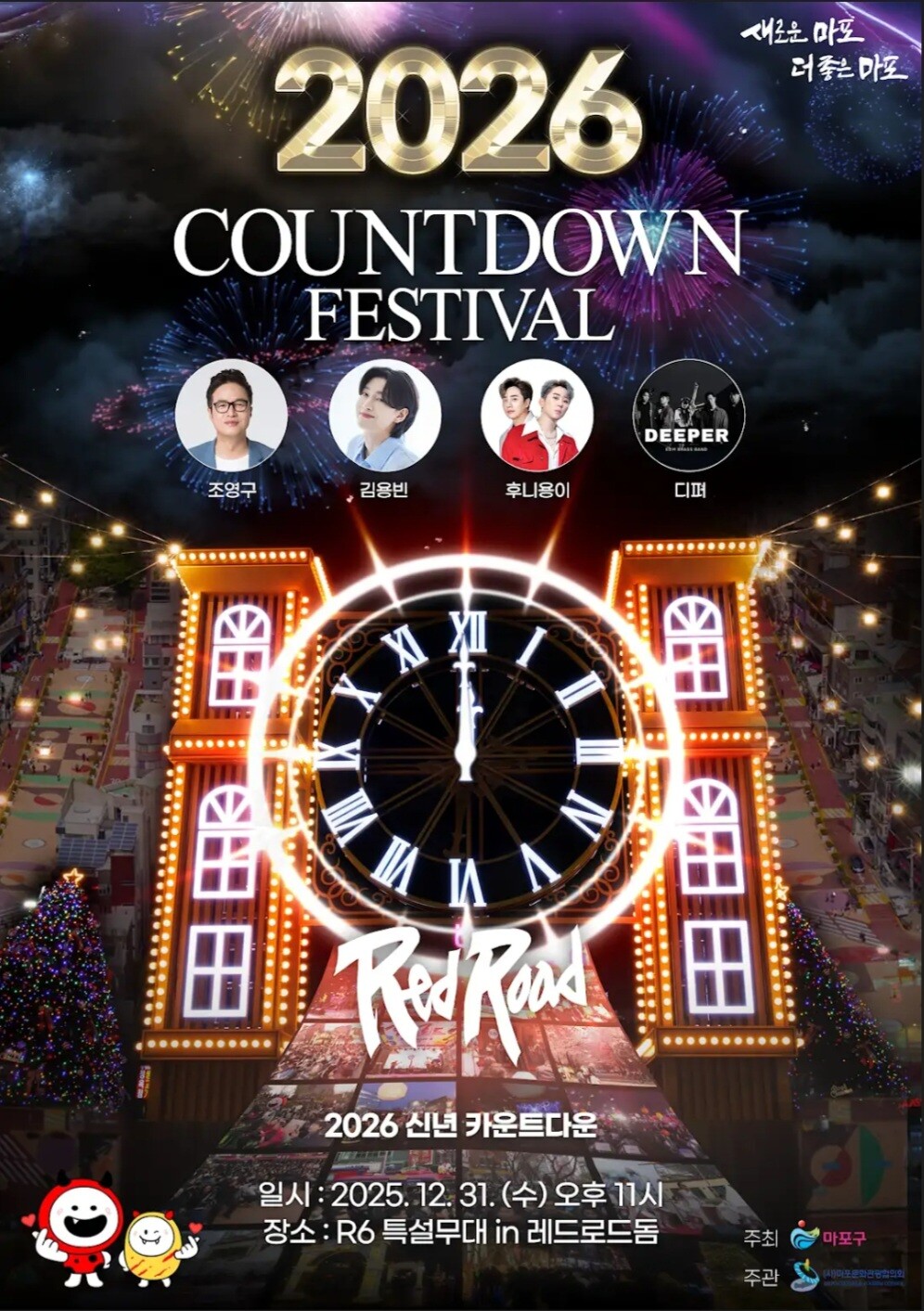 [HBN뉴스 = 정재진 기자] 마포구(구청장 박강수)는 2025년의 마지막 밤, 새로운 한 해의 시작을 구민과 함께 맞이하기 위해 12월 31일 레드로드 R6 에어돔 일대에서 ‘2026 레드로드 카운트다운 페스티벌’을 개최한다고 23일 밝혔다.