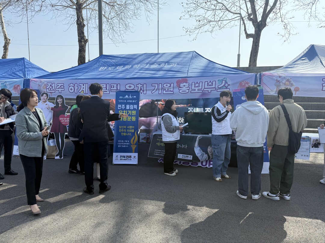 [HBN뉴스 = 이수준 기자] 전북특별자치도는 3월 3일부터 5일까지 전북대학교 상반기 동아리 모집 기간에 맞춰 대학생을 대상으로 ‘전주 하계올림픽 유치 홍보부스’를 운영하고 있다고 5일 밝혔다.