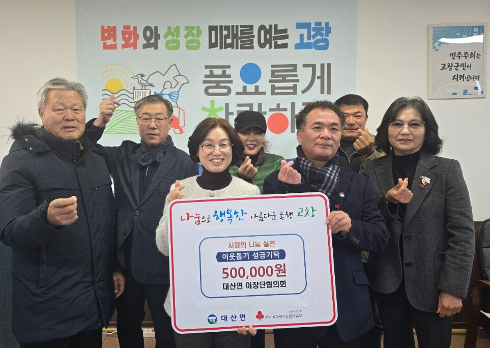 [HBN뉴스 = 이수준 기자] 고창군 대산면(면장 정현영)에서는 연말연시를 맞아 어려운 이웃을 돕기 위한 온정의 손길이 이어지며 지역사회에 훈훈함을 전하고 있다.