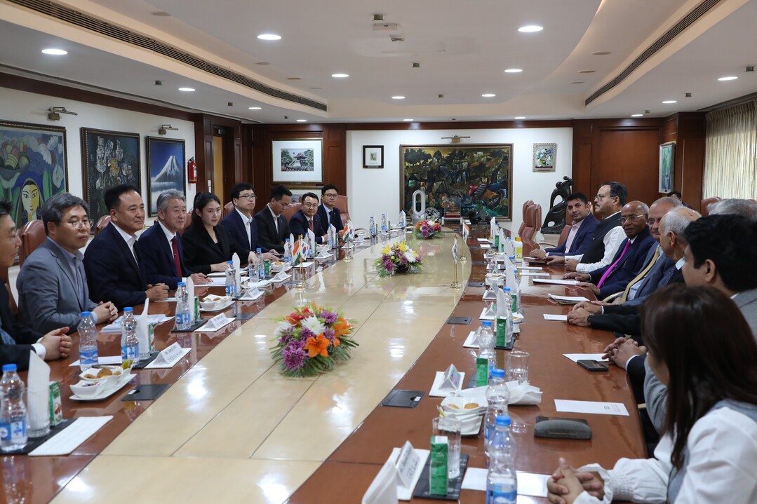 [하비엔뉴스 = 홍세기 기자] 강호동 농협중앙회 회장이 지난 26일(현지기준) 인도 뉴델리에 있는 이프코(IFFCO) 본사를 찾아 우다이 샹커 아와스티 이프코 대표이사, 란잔 샤르마 이프코키산파이낸스 대표이사 등 주요 사업 부문 대표들과 면담하고, 양사의 협력 확대 방안을 논의했다.