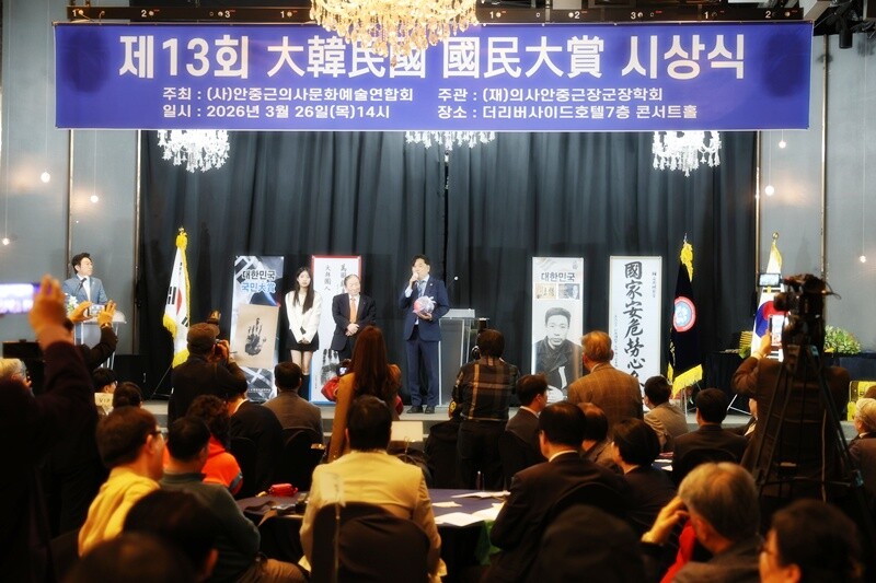 [HBN뉴스 = 이정우 기자] 대한민국 사회 각 분야에서 묵묵히 헌신해온 이들을 기리는 ‘제13회 대한민국 국민대상 시상식’이 지난 26일 깊은 울림 속에 막을 내렸다. (사)안중근의사 장학회(회장 이용일)가 사비를 털어 주최하는 이번 행사는 단순한 시상을 넘어, 공동체를 지탱하는 보이지 않는 손길과 정신을 재조명하는 자리였다. 명예이사장인 이수성 전 총리는 고령의 불편함에도 불구하고 직접 무대에 올라 수상자들에게 상패를 전달하며 행사의 품격을 더했다.