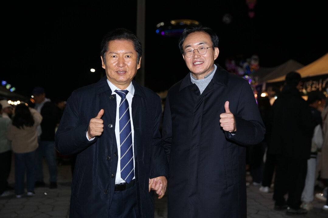 윤 시장은 지역 상인들과 소통하며 지역경제 활력을 강조했고, 정 대표는 시민들과 교류하며 혁신도시의 중요성을 다시 한 번 확인했다.