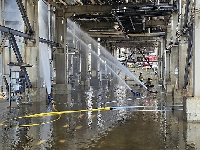 지난 15일부터 정기보수 공사에 들어간 해당 공장에서 배관 내부에 남아 있던 수소가스를 완전히 제거하지 않은 상태로 배관을 개방하는 작업을 하던 중 폭발이 일어난 것으로 추정된다.