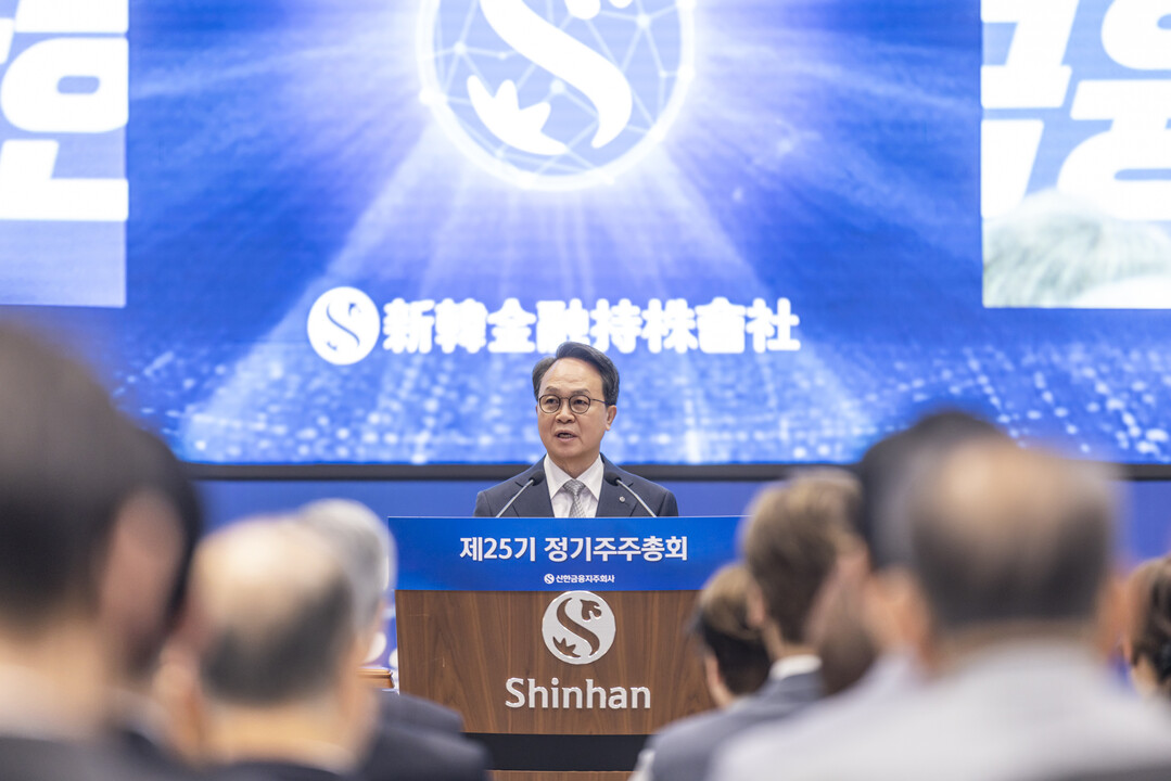 이날 진옥동 회장은 주주총회 인사말을 통해 "기업가치 제고 계획을 차질없이 이행하며 주주환원율 50%라는 목표를 조기에 달성할 수 있었다. 그룹의 미래 경쟁력으로 직결되는 핵심 영역을 중심으로 '생산적 금융', 'AX·DX 가속화', `'미래 전략 사업 선도', '내부통제와 금융소비자보호 강화'를 추진해 일류 신한을 완성하겠다"고 강조했다.