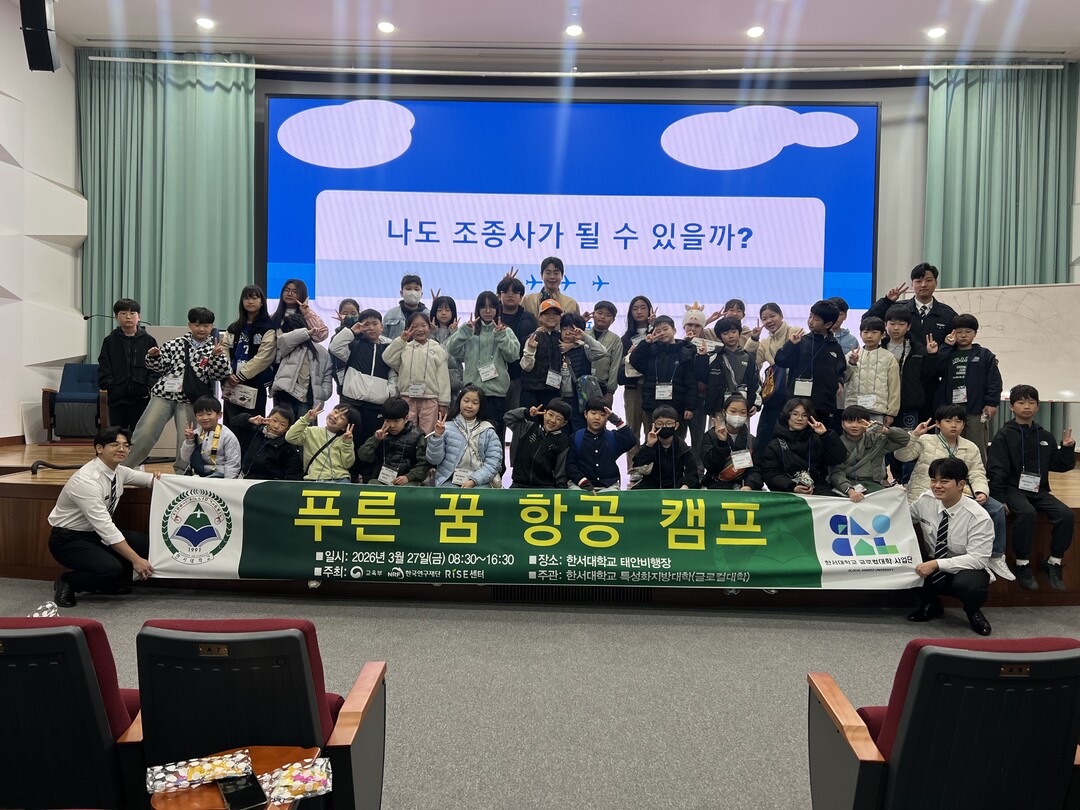 [HBN뉴스 = 정동환 기자] 한서대학교(총장 함기선) 글로컬대학사업단은 2026년 3월 27일(금), 태안캠퍼스에서 지역 초등학생을 대상으로 ‘푸른 꿈 항공캠프’를 성공적으로 개최했다.