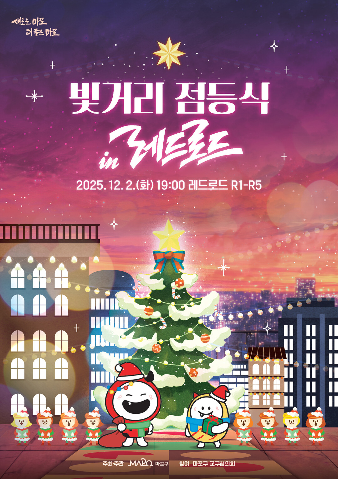 [HBN뉴스 = 정재진 기자] 마포구(구청장 박강수)는 다가오는 크리스마스와 연말연시를 맞아 레드로드에 빛거리를 조성하고 12월 2일 마포구교구협의회와 함께 ‘빛거리 점등식 in 레드로드’를 개최한다고 27일 밝혔다.