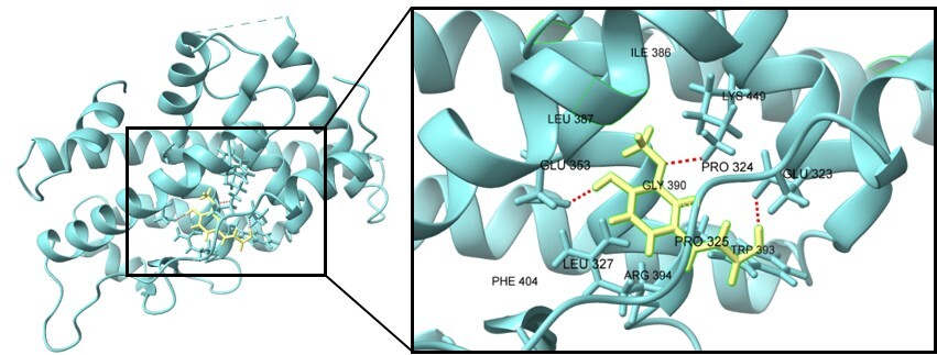 | AI 분자 모델링 기술을 활용한 ‘페룰릭산’ 효능 실험. [이미지=LG생활건강] |