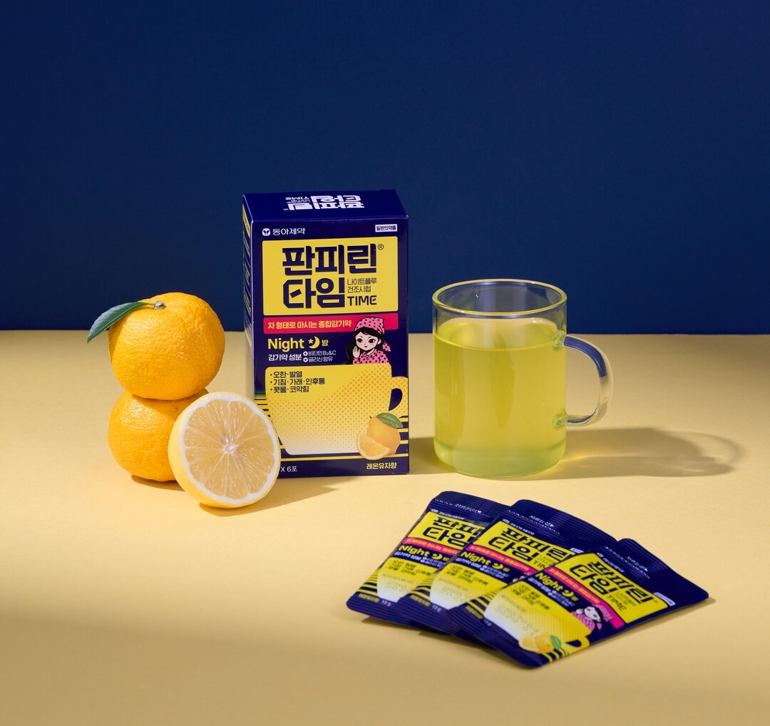레몬 유자향으로 소비자의 기호도를 높였으며 따뜻한 차처럼 복용할 수 있어 수분 보충과 컨디션 회복의 시너지를 더했다. 판피린타임 나이트플루 건조시럽은 일반의약품으로 가까운 약국에서 구매할 수 있다.