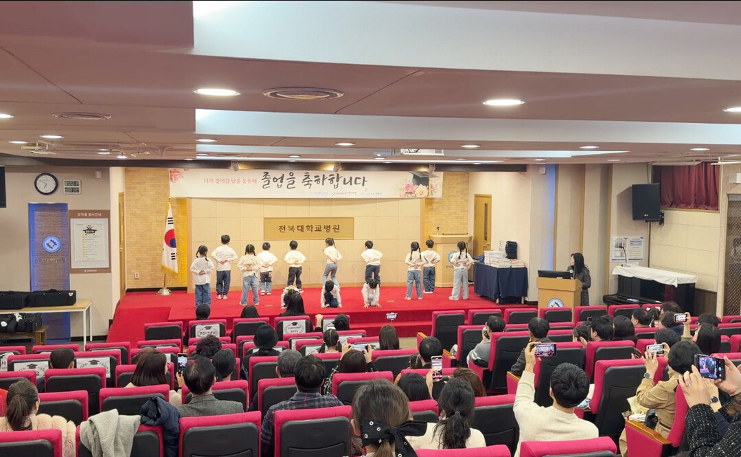병원내 모악홀에서 열린 이날 졸업식에는 14명의 졸업 아동과 학부모, 어린이집 교직원 등이 참석한 가운데 졸업장 수여와 축하공연 등 다양한 프로그램으로 진행됐다.