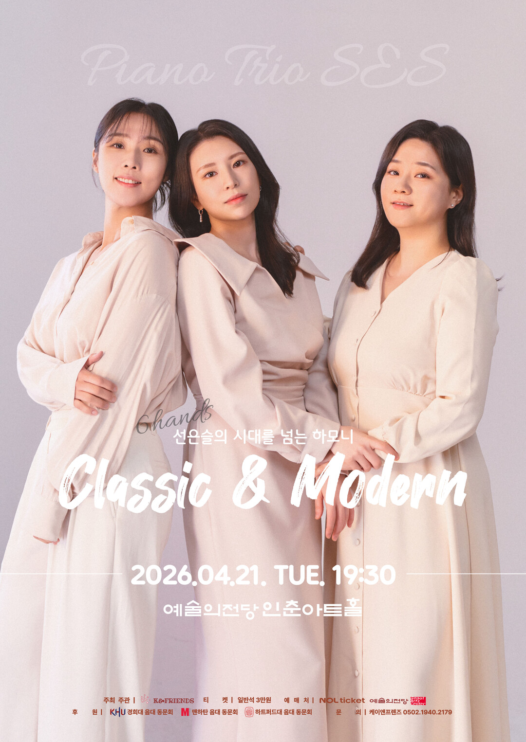 이번 연주회는 한 대의 피아노 앞에 세 명의 연주자가 나란히 앉아 긴밀한 호흡과 감정의 교차로 만들어내는 6핸즈 앙상블을 선보이는 무대다. 단순한 협연을 넘어 하나의 음악적 대화처럼 전개되는 것이 특징이다.