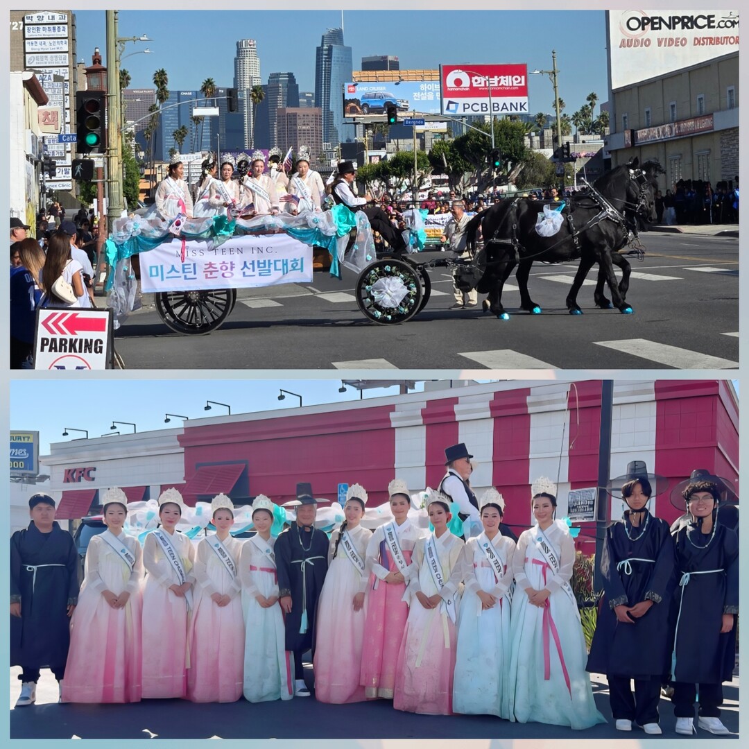 무엇보다 화려함의 정점은 두 마리 흑마가 끄는 꽃마차였다. 그 위에는 제2회 미스틴 춘향 선발대회 수상자이자 한인 차세대를 대표하는 김연희·한은채·승단비·박하윤·임소연·박로아·조이진·권서연·편서연·방서연 양이 올라 행진했다. 이들은 한복의 단아함과 청춘의 기품을 함께 보여주며 “우리는 한국인의 후예”라는 자부심을 전했다.