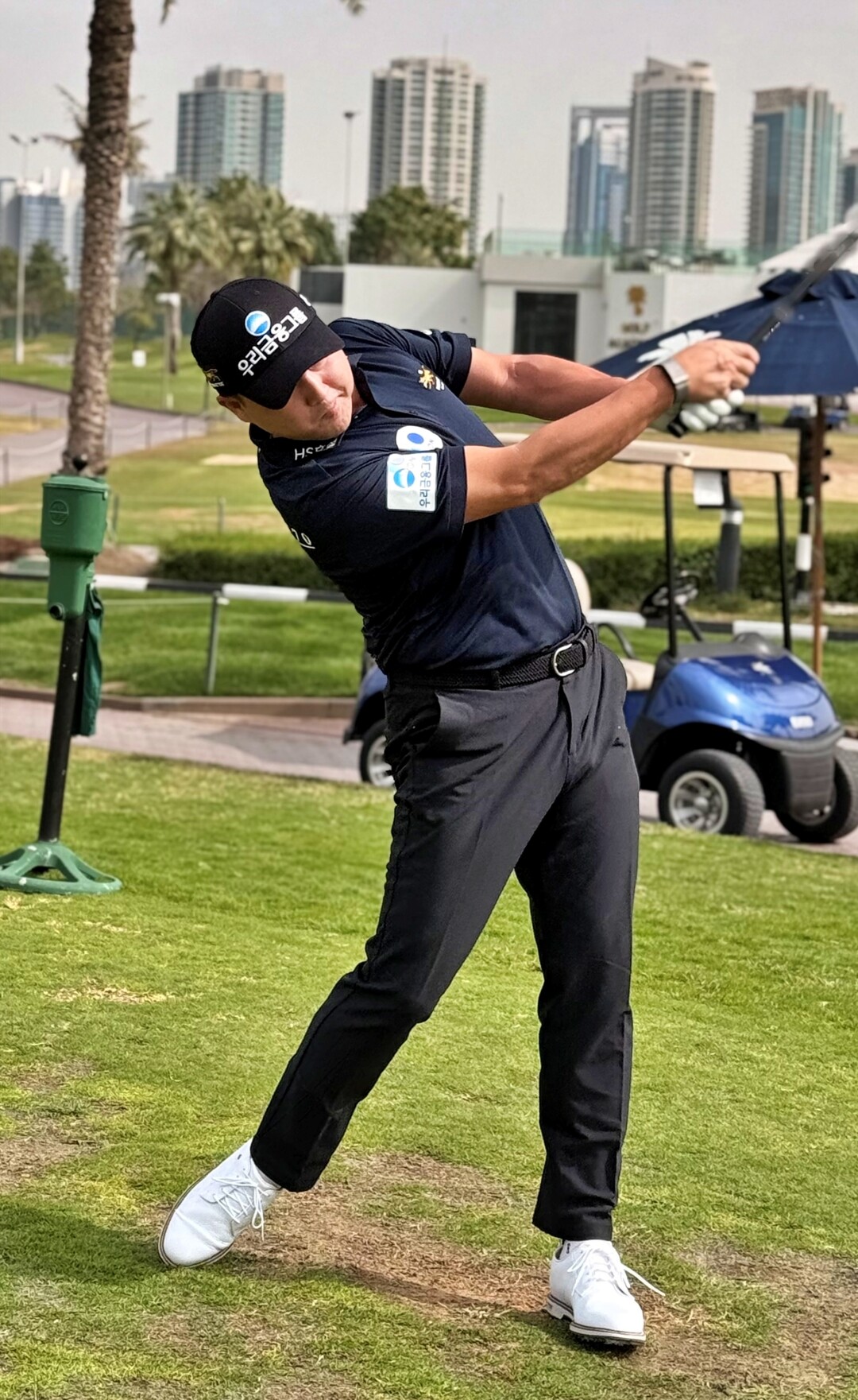 | 우리금융그룹 후원 선수 이태훈이 LIV GOLF 출전을 앞두고 연습라운드에서 힘찬 샷을 선보이고 있다. [사진=우리금융그룹] |