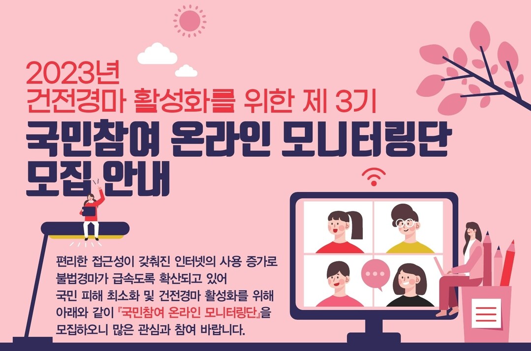 ‘국민참여 모니터링단’은 온라인상의 불법경마 사이트와 홍보물을 찾아내고, 신고를 통해 삭제하는 활동 등을 수행한다. 또 실적에 따라 소정의 포상금과 활동비를 받는다.