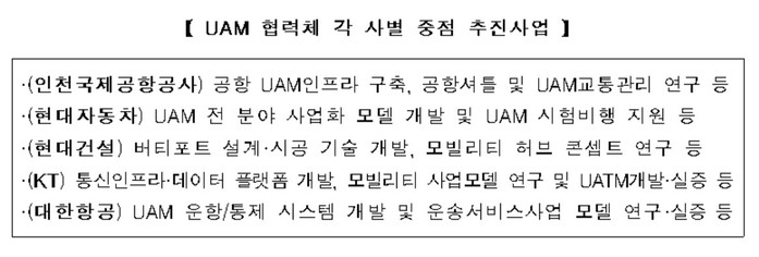 또한 앞으로 각 사는 자체 협력 분야를 추가 도출하는 한편, UAM 정책협의체(UAM Team Korea) 활동과 K-UAM 그랜드챌린지를 공동으로 수행하는 등 국내 UAM 상용화를 적극 뒷받침할 예정이다.