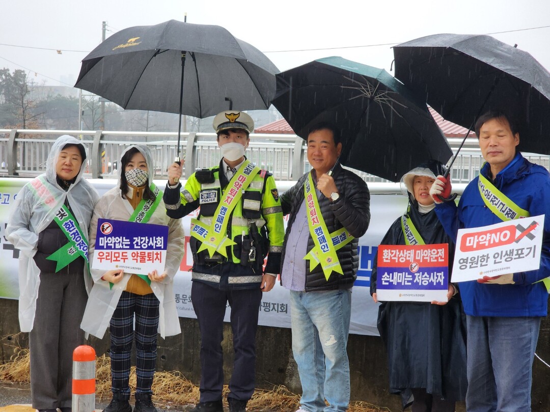 사진=사단법인 한국숲사랑총연합회 경기지역 소속 회원들과 함께 지난 5일 경기도 포천시 재래시장 인근에서 ‘산불 예방·마약 근절 캠페인’ 및 ‘환경 정화 활동’을 진행했다. |