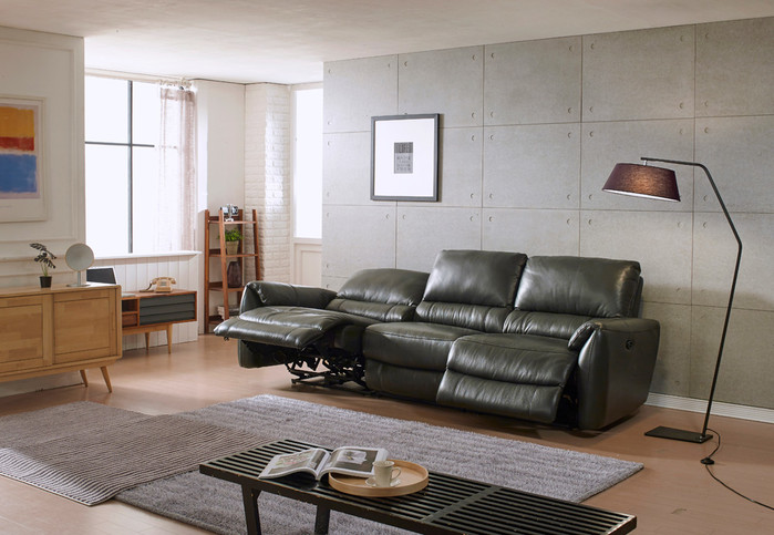 천연 면피 가죽 소재를 사용한 리클라이너 소파는 부드러운 촉감과 고급스러운 분위기를 연출하며, 차별화된 디자인으로 세련된 공간을 완성해주고, 기능성 패브릭 원단의 리클라이너 소파는 이지클린, 생활발수, 항균효과 등의 기능성으로 관리가 편한 장점이 있다.