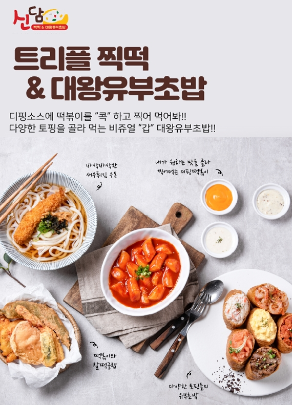 대왕유부초밥과 떡볶이를 맛볼 수 있는 신규 외식 프랜차이즈 ‘신담’이 런칭을 앞두고 있다.