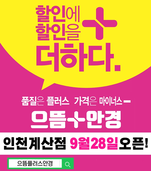 소비자 만족도 높은 브랜드 으뜸플러스안경, 9월 28일(토) 인천 계산점 정식 오픈 50%~ 최대90% 오픈 할인 행사 예고