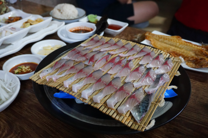 서귀포 중문관광단지 성산일출봉 협재해수욕장 함덕해수욕장 중문해수욕장등 관광을 하고 첫일정이나 마지막일정으로 제주공항근처횟집 원담에서 신선한 고등어회를 먹어보는걸 추천한다.