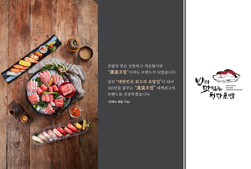 바른f&b의 초밥 전문점 브랜드 청담초밥 직영점이 현재 일산, 송파 방이 점 등의 지점에 대박 상승세를 이어 10월 14일 문정동법조타운점에 100평대 매장을 오픈한다.