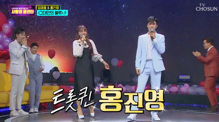 홍진영은 전화 연결이 종료된 이후, 임영웅과 ‘그대 안의 블루’를 듀엣으로 선보여 출연진들의 박수를 받았다.