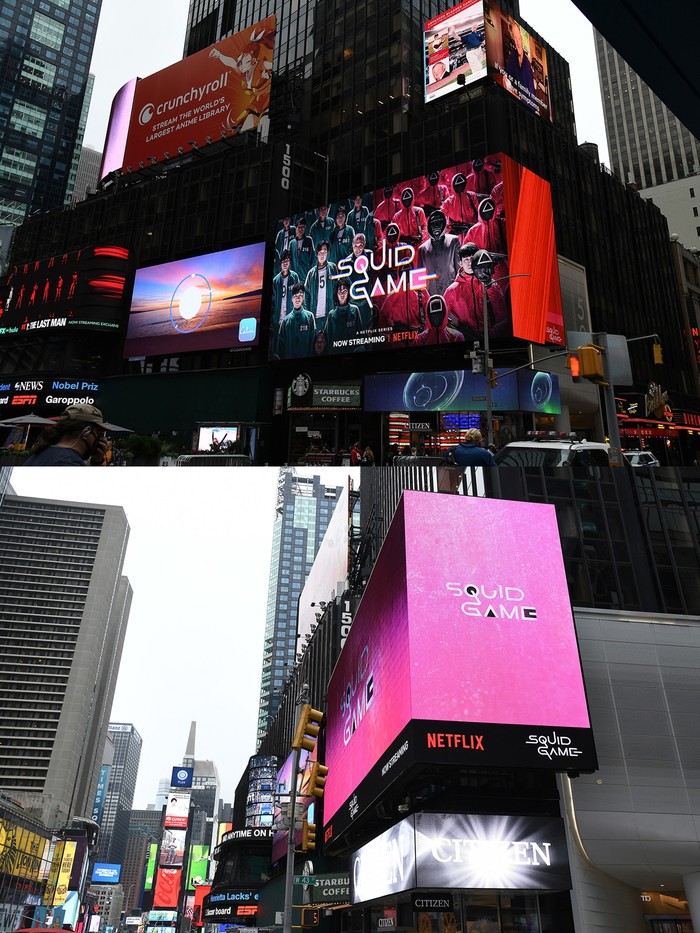 | ▲미국 타임스퀘어 전광판에 등장한 넷플릭스 오리지널 시리즈 '오징어 게임' |