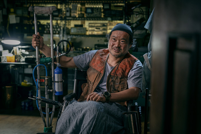 A. 무기를 만드는 것 그리고 무기를 휠체어를 타고 잘 쓸 줄 아는 것이 매력적이다. 두 발이 자유롭지 않아도 유연하고 능수능란하게 착착착 쓰는 모습이 신발을 신는 것처럼 느껴졌는데 그게 아주 좋았다. 두식의 물리적 공간이 작지만 그 안에서 무기와 두식의 팔이 하나로 보일 정도로 자유자재로 그리고 역동성을 살리고 싶었다.