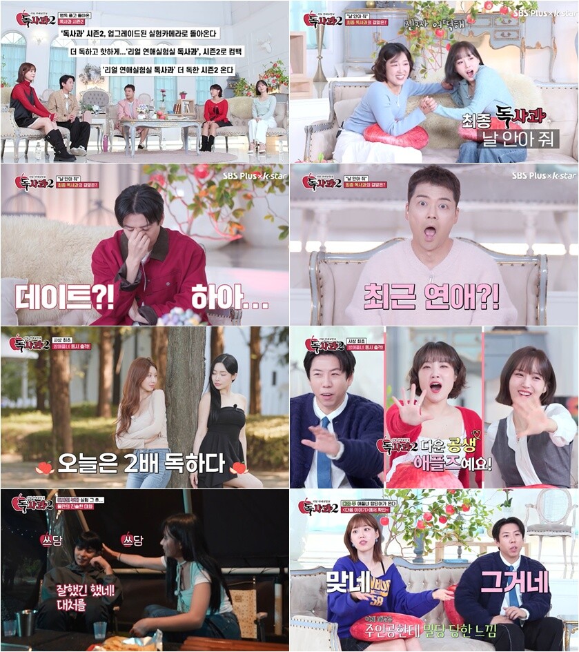 연인의 사랑을 실험해 ‘리얼 연애 예능 끝판왕’, ‘연애 심리학 맛집’으로 인기를 모으고 있는 SBS Plus, Kstar 공동 제작 예능 ‘리얼 연애실험실 독사과 시즌2’는 이번 주부터 매주 토요일 밤 9시 방송된다.