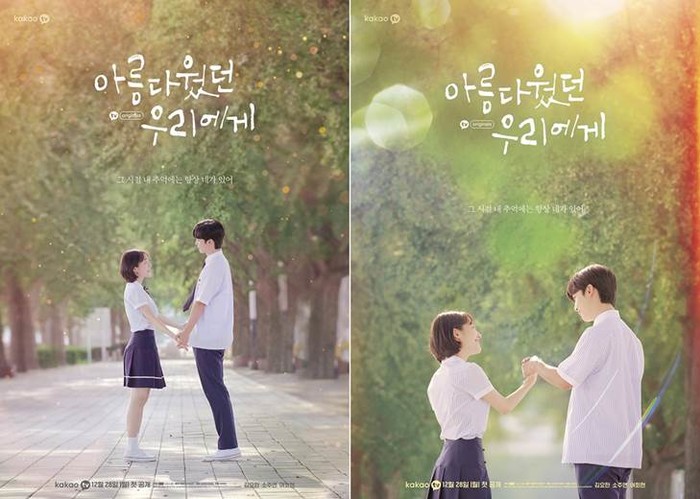 <아름다웠던 우리에게>(기획 카카오M, 제작 와이낫미디어)는 명랑 발랄한 여고생 ‘신솔이’와 그녀가 17년째 짝사랑하는 옆집 소꿉친구 ‘차헌’, 그리고 이들과 청춘을 함께했던 친구들의 이야기를 담은 첫사랑 소환 로맨스. 중국 텐센트TV의 인기 드라마 <치아문단순적소미호(致我们单纯的小美好)>를 카카오M이 한국판으로 리메이크 한 작품이다.