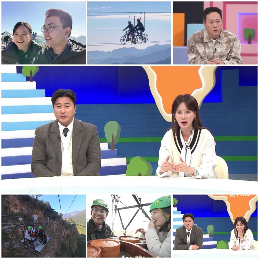 스튜디오에서 이를 지켜보던 안정환·이혜원 부부조차 “보기만 해도 무섭다”라고 손사래를 친 가운데, 생각보다 짧은 ‘하늘 자전거’의 체험 시간에 아쉬워한 김나희는 “더 무서운 곳에 가보자”라며 상공 228m 높이의 출렁다리 체험에 나선다. 뻥 뚫린 철제로 인해 발밑이 훤히 보이는 출렁다리의 위용에 아시스는 여러 차례 걸음을 멈춰서고, ‘스튜디오 MC’ 송진우는 “대체 (다리를 건너자고 한) 의도가 뭐야”라며 아시스의 마음에 진지하게 빙의해 웃음을 안긴다.