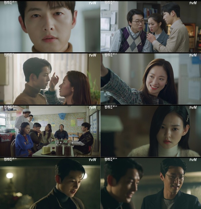 바벨의 진짜 보스를 찾아내면 죽이려 했던 빈센조는 방향을 틀어 새로운 계획을 세웠다. 자신의 존재가 드러나는 걸 두려워하는 장준우를 세상에 끌어내고, 그가 가장 소중히 여기는 바벨을 무너뜨리기로 한 것. 빈센조는 가짜 총으로 장준우를 협박하고 현장에서 검거됐지만, 사실 그는 정인국(고상호 분) 검사가 오기를 기다리고 있었다. 빈센조와 홍차영은 목표가 같은 정검사에게 공조를 제안하고 풀려났다.