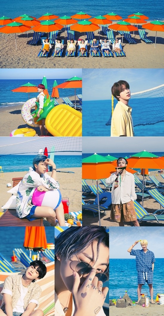 개별 컷에도 해변에서 바캉스를 즐기는 일곱 멤버의 모습이 담겼다. 수박, 해먹, 비치볼 등 다양한 소품을 활용해 각기 다른 방식으로 바닷가에서 여유롭게 휴식을 즐기는 방탄소년단. 앞선 콘셉트 포토 속 주유소에 들러 세차하는 모습이 해변에 도착해 바캉스를 보내는 장면으로 자연스럽게 이어진다.