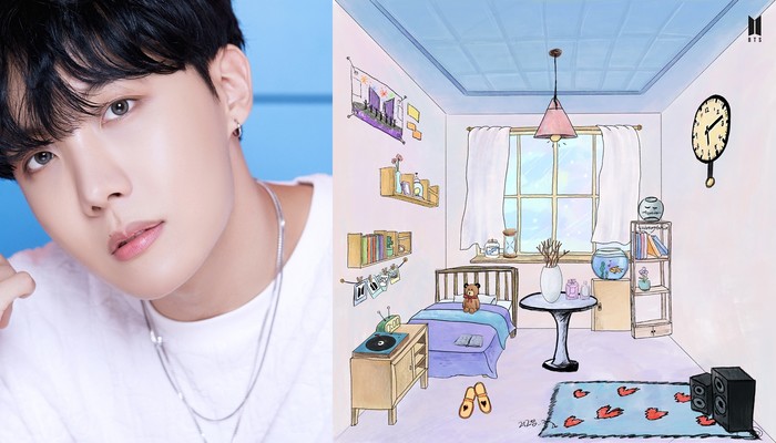 제이홉은 16일 빅히트 엔터테인먼트 공식 홈페이지에 손수 그린 소품이 담긴 '아미의 방' 이미지와 방을 소개하는 육성 오디오 가이드를 올렸다.