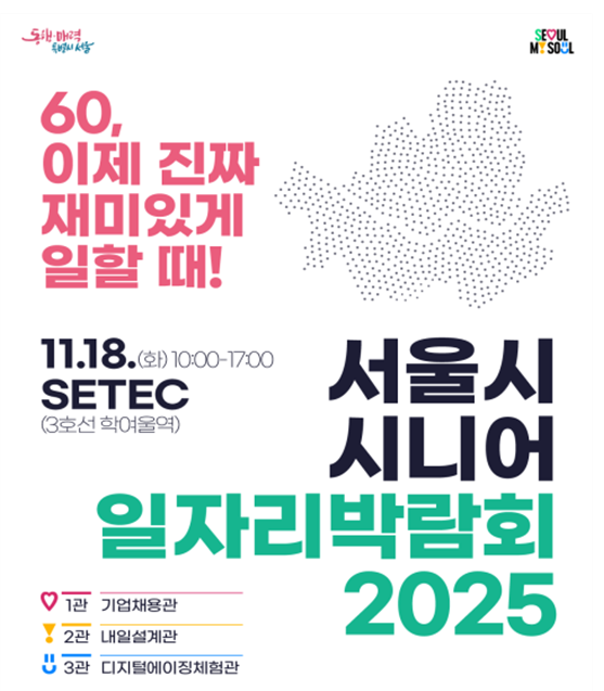 [HBN뉴스 = 김혜연 기자] 서울시는 오는 11월 18일(화) SETEC(강남구)에서 「서울시 시니어 일자리박람회 2025」를 개최한다. 초고령사회 대응 종합대책 ‘9988 서울 프로젝트’의 하나로 마련된 이번 박람회에서는 시니어들이 쌓아온 경력과 전문성을 살려 경제적 자립을 이루고 사회참여를 확대할 수 있도록 다양한 프로그램이 진행된다.