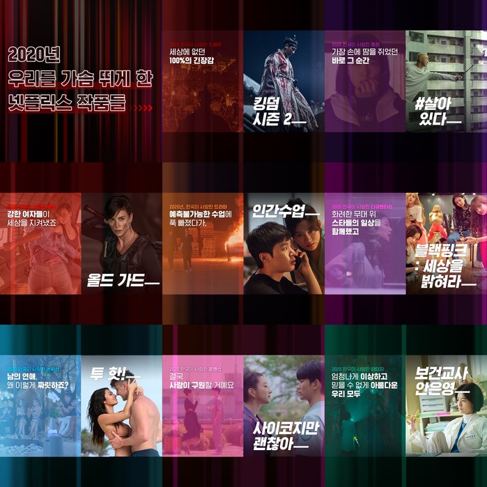 [하비엔=노이슬 기자] 세계적인 엔터테인먼트 스트리밍 서비스 넷플릭스가 올 한 해 동안 한국인의 가슴을 뛰게 한 장르별 인기 작품을 한자리에 모아 공개했다.
