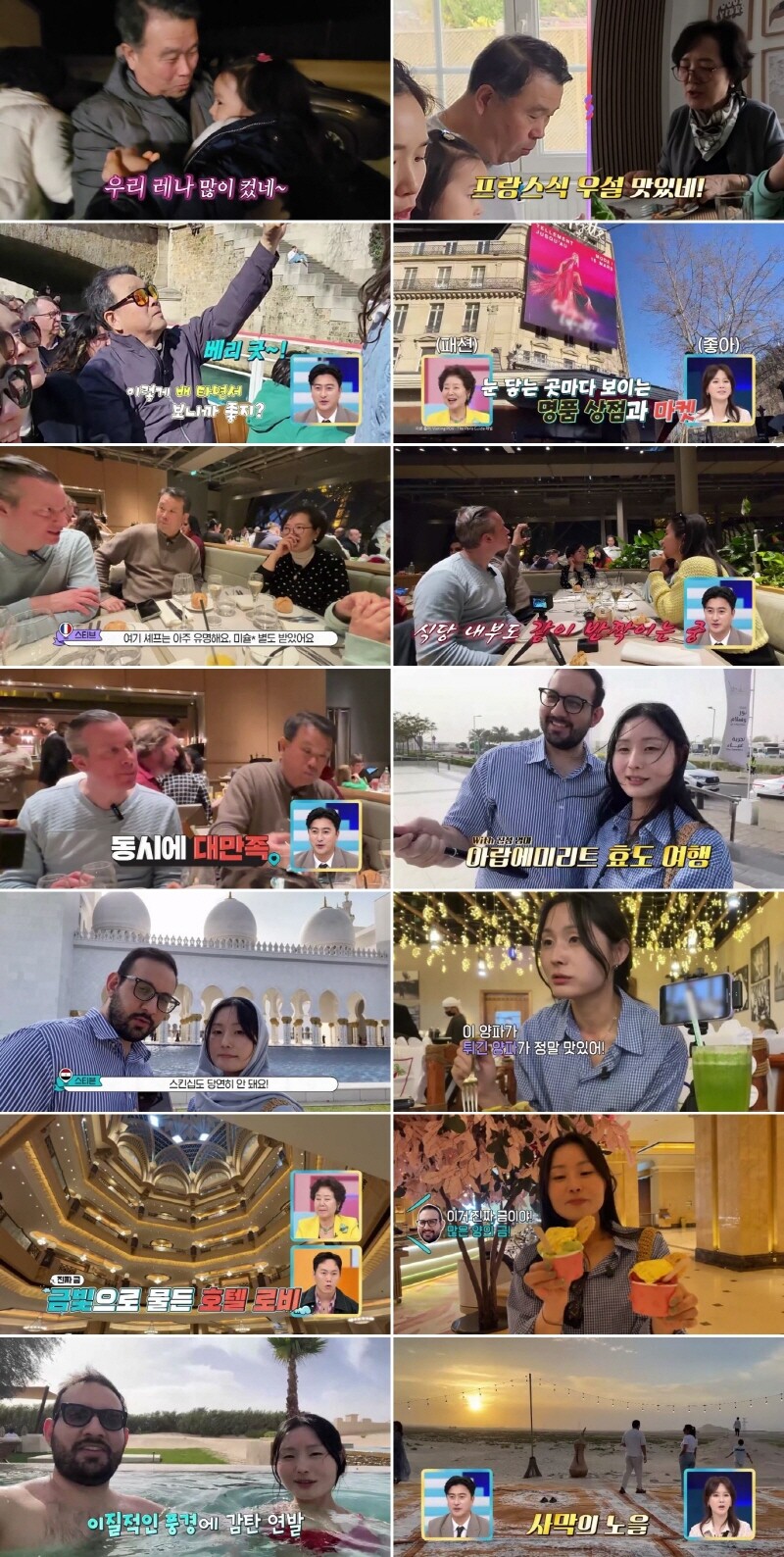 10일 방송된 채널A ‘선 넘은 패밀리’ 78회에서는 4MC 안정환-이혜원-유세윤-송진우와 프랑스 대표 파비앙, 이집트 대표 새미가 함께한 가운데, 프랑스와 아랍에미리트(UAE)로 선 넘은 패밀리들이 각국의 특징에 맞춘 ‘효도 여행’ 코스를 낱낱이 공개해 관심을 사로잡았다.