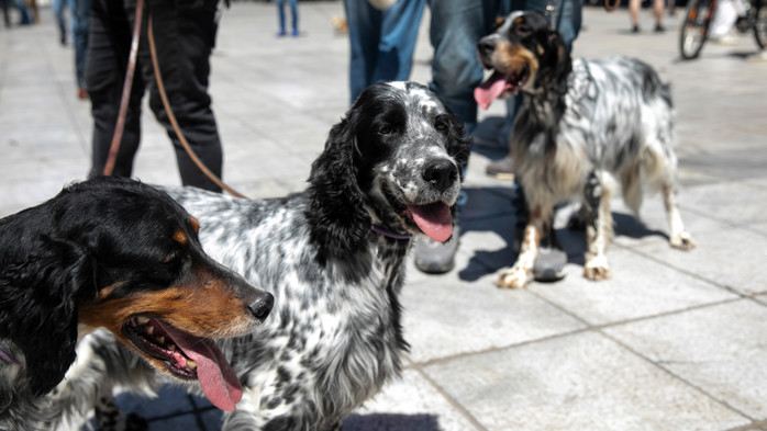 수백 마리의 개 주인과 반려견들이 지난 23일 일요일(현지시간) 그리스 의회 밖에 모여 반려동물의 중성화를 의무화하는 법의 입안에 항의했다.
