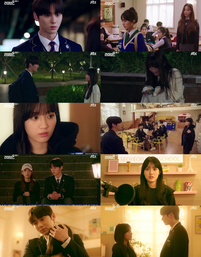 지난 29일 방송된 JTBC 미니시리즈 ‘라이브온’(연출 김상우/ 극본 방유정/ 제작 플레이리스트, 키이스트, JTBC스튜디오) 7회에서는 백호랑(정다빈 분)이 한 말을 통해 엄마를 이해하게 된 고은택(황민현 분)과 그의 믿음으로 학폭(학교폭력) 피해 사실을 고백한 백호랑의 구원 서사가 시청자들의 가슴을 찡하게 했다.