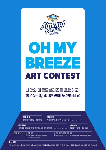 [하비엔뉴스 = 정동환 기자] 프리미엄 식물성 음료 브랜드 아몬드브리즈가 소비자 참여형 디자인 공모전을 진행한다고 29일 밝혔다.